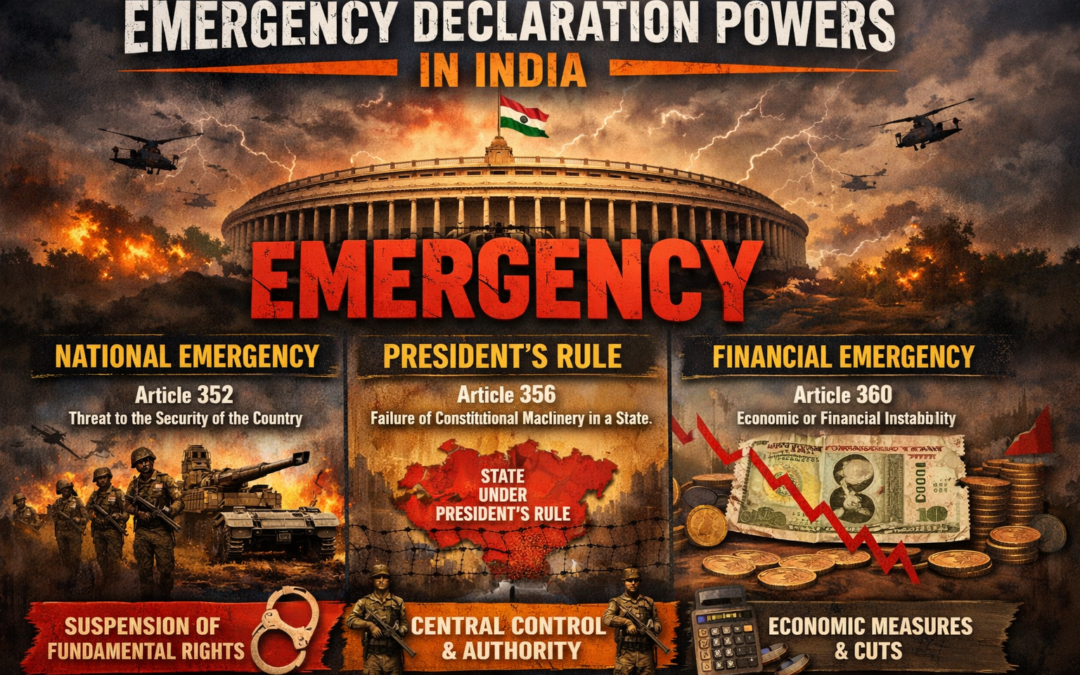 ʻʻದೇಶದ ಸುವ್ಯವಸ್ಥಿತ ಹಾಗೂ ಶಾಂತಿಯುತ ಆಡಳಿತಕ್ಕೆ ಭಂಗ ಉಂಟಾಗುವ ಸನ್ನಿವೇಶವನ್ನು ತುರ್ತು ಪರಿಸ್ಥಿತಿ ಎಂದು ಕರೆಯಲಾಗಿದೆ.ʼʼ ಇಂತಹ ಸನ್ನಿವೇಶವನ್ನು ಸಮರ್ಥವಾಗಿ ಎದುರಿಸಿ ದೇಶವನ್ನು ಸುಸ್ಥಿರವಾಗಿಡಲು ರಾಷ್ಟ್ರಪತಿಗಳು ಮೂರು ಬಗೆಯ ತುರ್ತುಪರಿಸ್ಥಿತಿಗಳನ್ನು ಘೋಷಿಸುತ್ತಾರೆ. ಅವುಗಳು ಈ ಕೆಳಗಿನಂತಿವೆ: