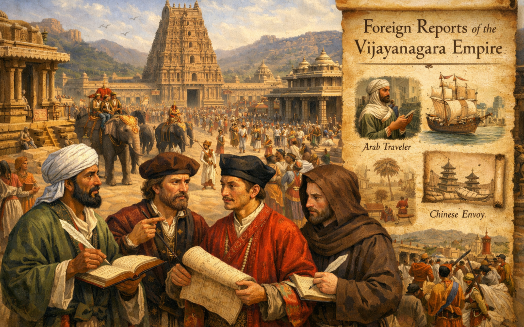 ವೈಭವ ಮತ್ತು ಸಾಂಸ್ಕೃತಿಕ ಶ್ರೀಮಂತಿಕೆಗೆ ಹೆಸರುವಾಸಿಯಾದ ವಿಜಯನಗರ ಸಾಮ್ರಾಜ್ಯವು ಹಲವಾರು ವಿದೇಶಿ ಪ್ರವಾಸಿಗರನ್ನು ಆಕರ್ಷಿಸಿತು, ಅವರು ತಮ್ಮ ಅನುಭವಗಳು ಮತ್ತು ಅವಲೋಕನಗಳನ್ನು ವಿವರಿಸಿದರು. ಅವರ ಖಾತೆಗಳು ಈ ದಕ್ಷಿಣ ಭಾರತದ ಸಾಮ್ರಾಜ್ಯದ ಜೀವನ ಮತ್ತು ವೈಭವದ ಬಗ್ಗೆ ಆಕರ್ಷಕ ನೋಟವನ್ನು ನೀಡುತ್ತವೆ. ವಿಜಯನಗರದ ತಮ್ಮ ಅನಿಸಿಕೆಗಳನ್ನು ದಾಖಲಿಸಿದ ಗಮನಾರ್ಹ ವಿದೇಶಿ ಪ್ರವಾಸಿಗರ ಒಳನೋಟಗಳನ್ನು ಕೆಳಗೆ ನೀಡಲಾಗಿದೆ.