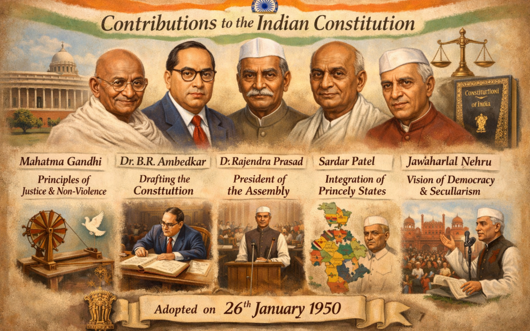 ಭಾರತದ ಸ್ವಾತಂತ್ರ್ಯ ನಂತರ ರಾಷ್ಟ್ರದ ಭವಿಷ್ಯವನ್ನು ನಿರ್ಧರಿಸಿದ ಮಹತ್ವದ ದಾಖಲೆ ಎಂದರೆ ಭಾರತೀಯ ಸಂವಿಧಾನ. ಇದನ್ನು ರೂಪಿಸಲು ಅನೇಕ ಪ್ರಜ್ಞಾವಂತ ನಾಯಕರು ತಮ್ಮ ಬುದ್ಧಿಮತ್ತೆ, ಅನುಭವ ಮತ್ತು ದೂರದೃಷ್ಟಿಯನ್ನು ಸಮರ್ಪಿಸಿದರು. ಅವರಲ್ಲಿಯೇ ಜವಾಹರಲಾಲ್ ನೆಹರು, ಡಾ. ಬಿ.ಆರ್. ಅಂಬೇಡ್ಕರ್ ಮತ್ತು ವಲ್ಲಭಭಾಯಿ ಪಟೇಲ ಅವರ ಕೊಡುಗೆಗಳು ಅತ್ಯಂತ ಮಹತ್ವಪೂರ್ಣವಾಗಿವೆ.