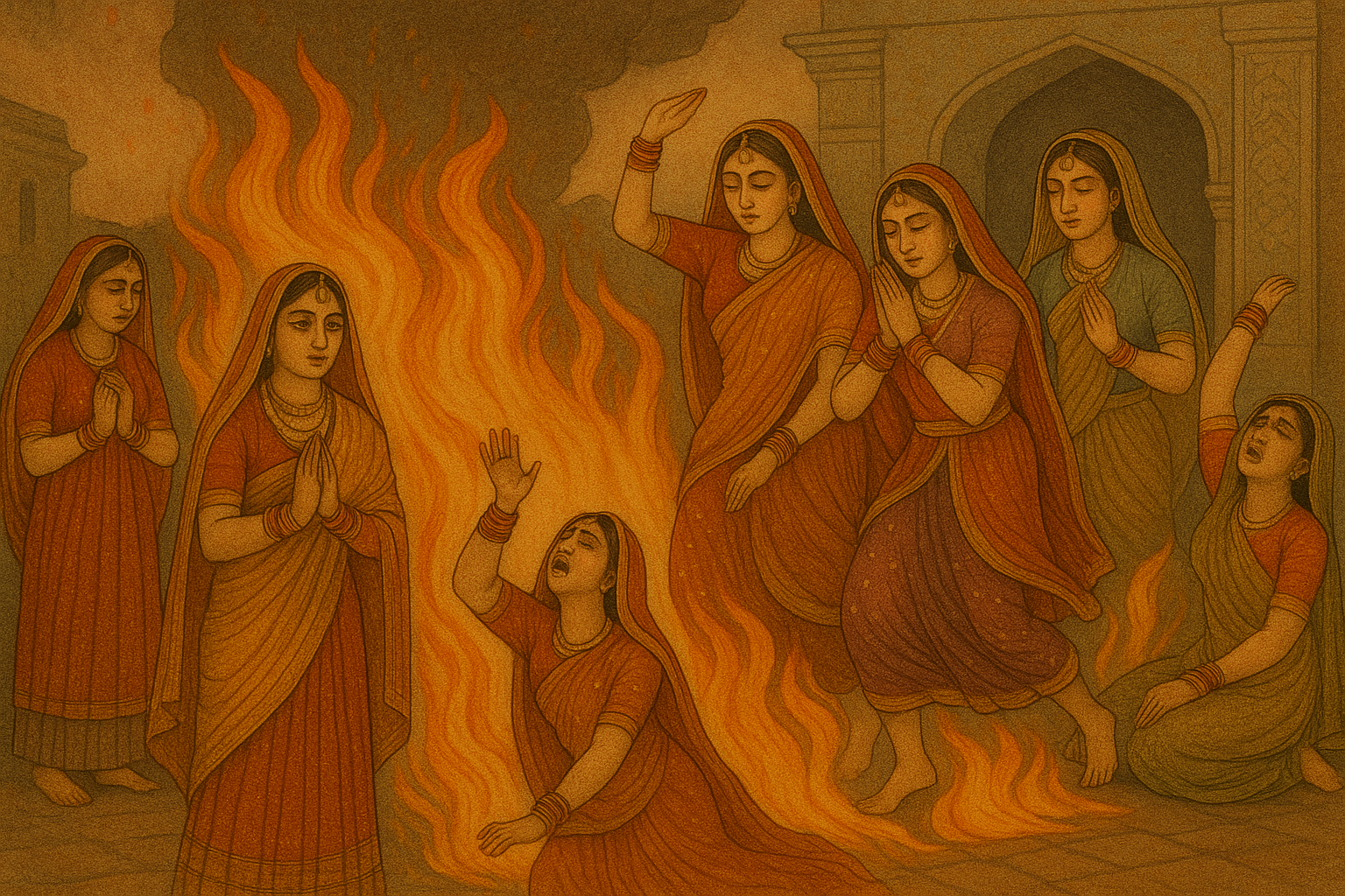 Alongside Johar, the practice of Sati also gained wider acceptance in certain parts of India during this turbulent period. Sati involved a widow immolating herself on her husband’s funeral pyre, and over time it came to be regarded as a symbol of ultimate loyalty and purity. The continuous invasions and fear of dishonour contributed to the spread and social acceptance of both Johar and Sati among some Hindu communities, marking a tragic and complex chapter in India’s social history.